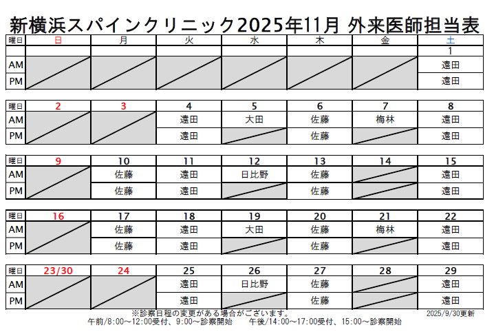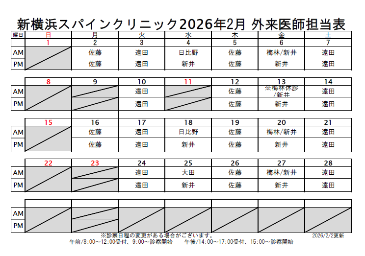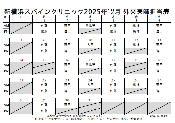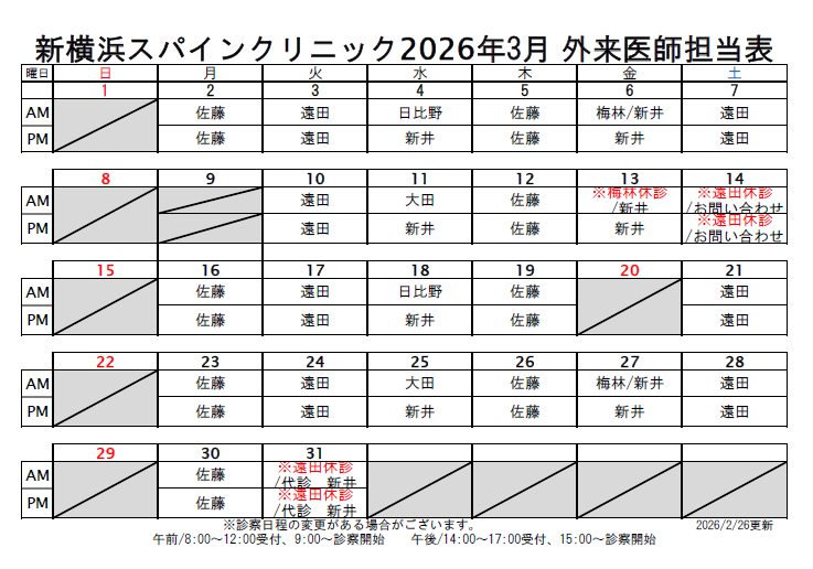| 大田医師 | 水曜日基準 | 暦1日基準の第2・第4水曜日 |