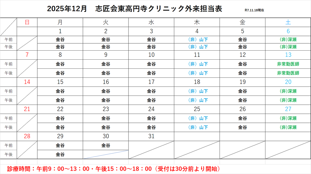 ・1/17 深瀬医師→非常勤医師へ変更になります。(午後休診)