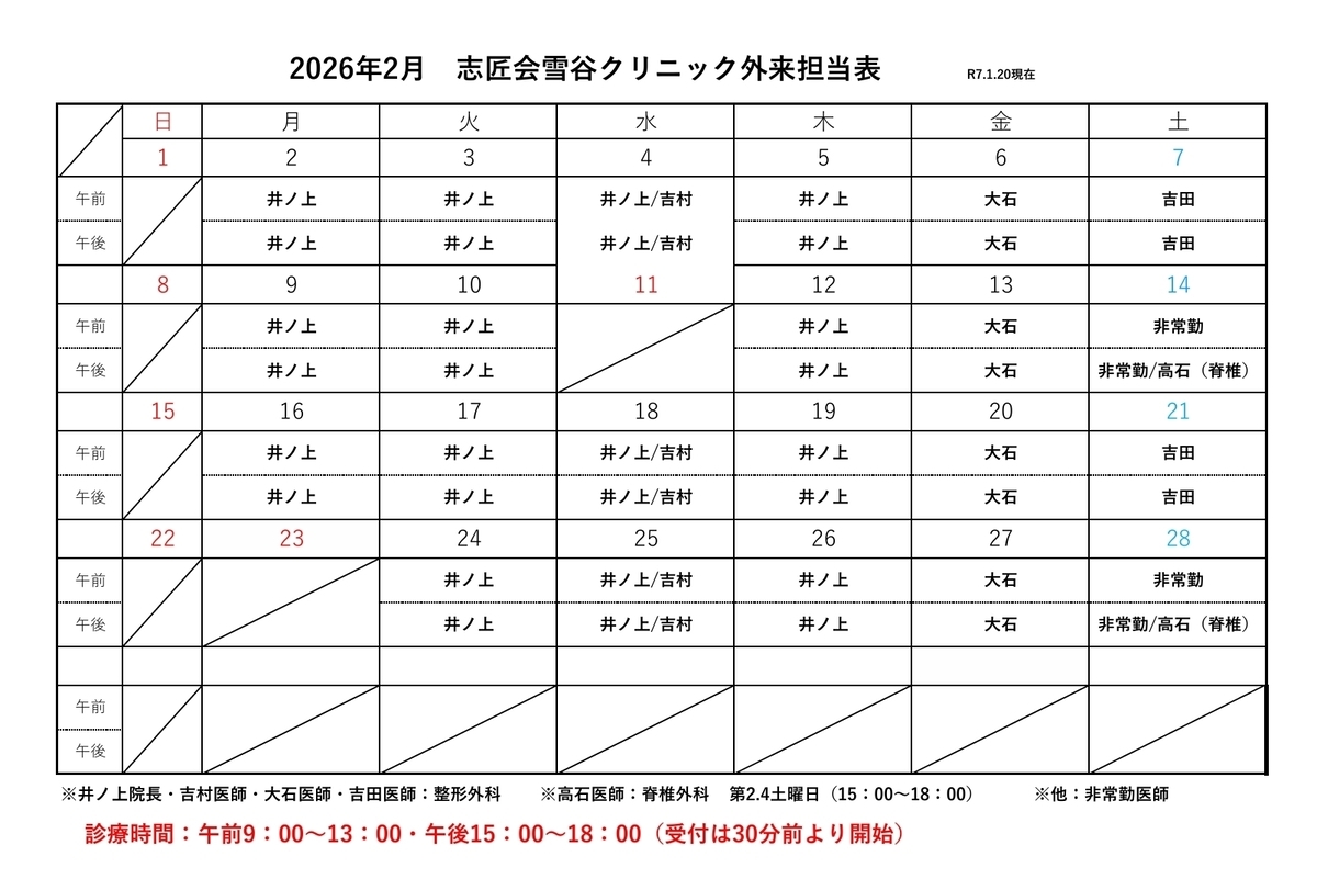 ・令和7年11月から脊椎外来が第2.4土曜日の午後(15:00~18:00)に変更になりました。